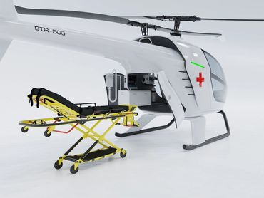 The STR-500 is an optionally piloted VTOL platform which leverages the efficiencies offered by Flettener technology to provide an affordable and easy-to-fly helicopter platform with 250kg of payload capacity. Mature designs and schematics for Urban Air Mobility, Medical Evacuation and Transfer, and Cargo Delivery use-cases have been developed.